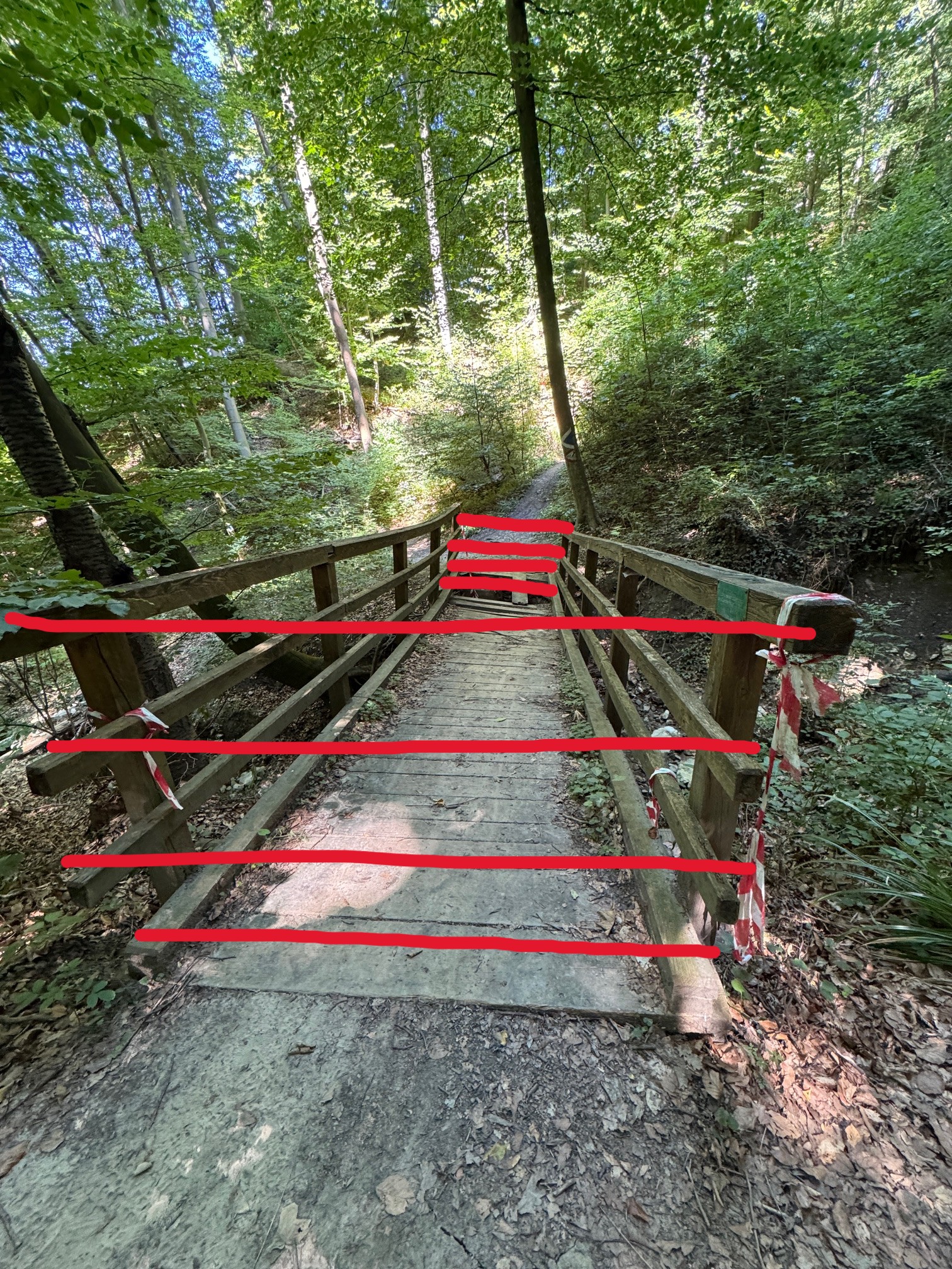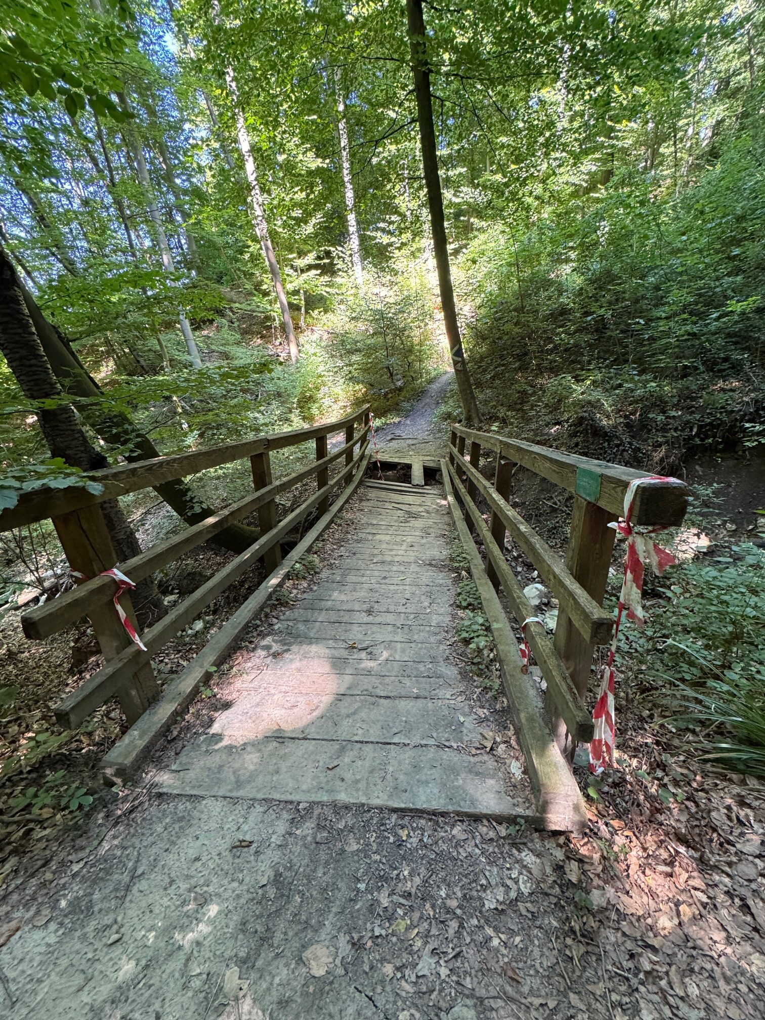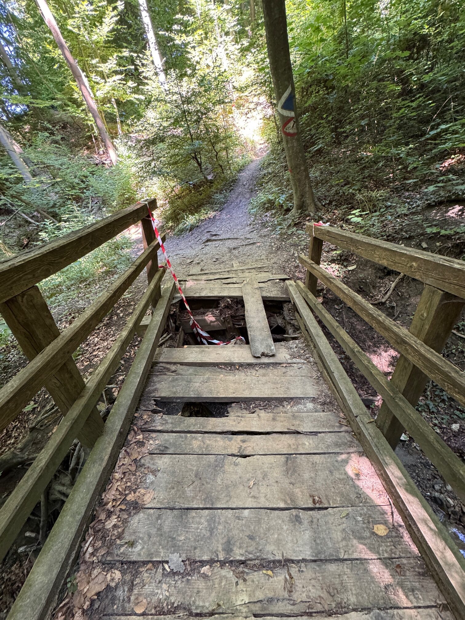 Eine Umgehung der Brücke ist bereits gekennzeichnet und ausgetreten bitte diese unbedingt zu benützen!