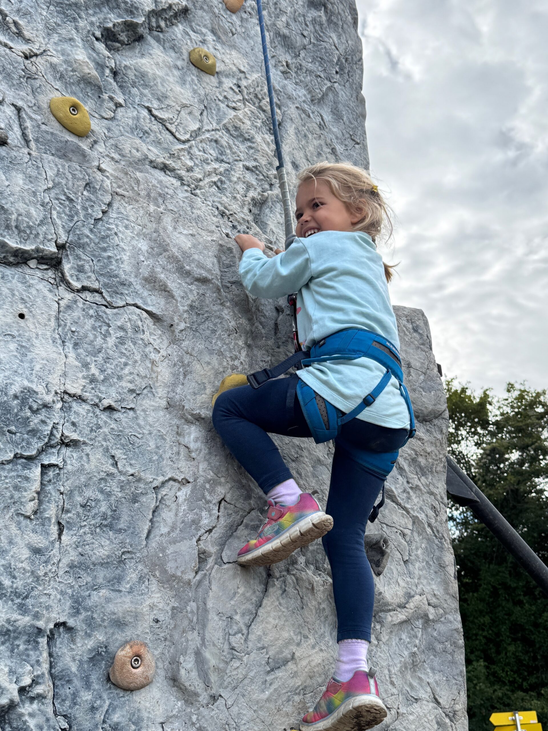 Wir waren mit den Teilnehmer:innen unseres Kinderkletterkurses an der Arnsteinwand. Es war ein kühler, aber zum Glück trockener Tag. Die Arnsteinwand bietet viele Möglichkeiten, auch