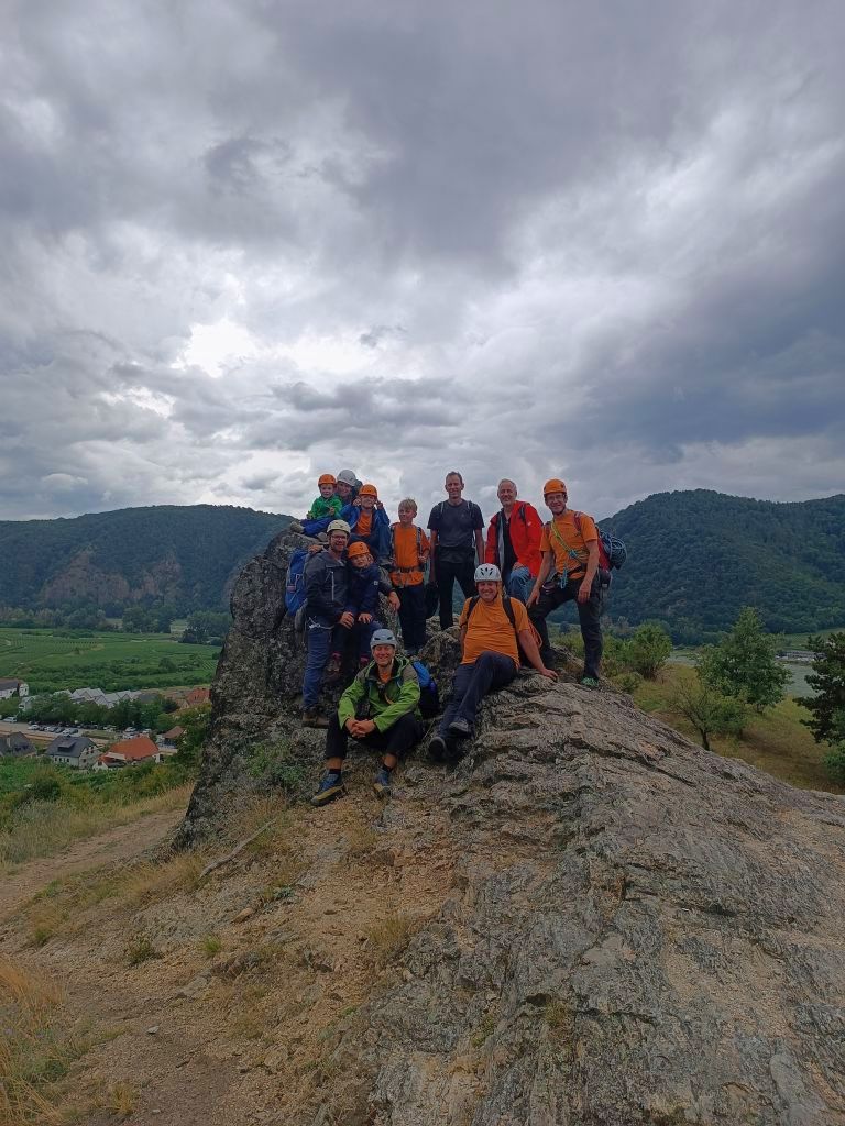 Zum Ferienende haben wir ein großes Wochenende für die Jugend organisiert. Begonnen hat es am Samstag den 30.8. mit einem Kletterevent für die Jugend aus dem gesamten Verein in Dürnstein. 18 Klosterneuburger und 9 Langenloiser trafen sich jugendfreundlich um 9:30 beim Bahnhof in Dürnstein, um nach Materialausgabe zu den Kletterfelsen aufzubrechen. Auch die Wr. Neustädter wollten kommen, haben dann aber wegen der langen Anreise und der vorhergesagten Regenmöglichkeit am Nachmittag eine Tour auf der Flatzerwand gemacht.