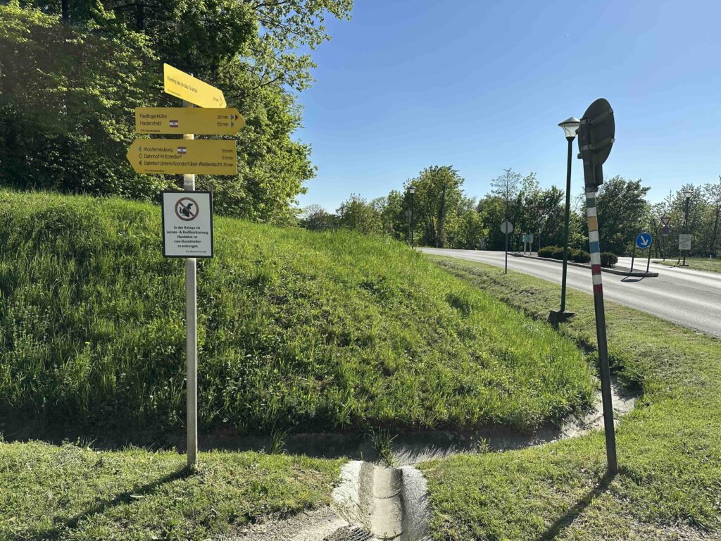 Hir treffen der blau markierte Weg aus Klosterneuburg, der grün markierte Weg aus Unterkritzendorf und der gelb markierte Weg aus Kritzendorf zusammen.