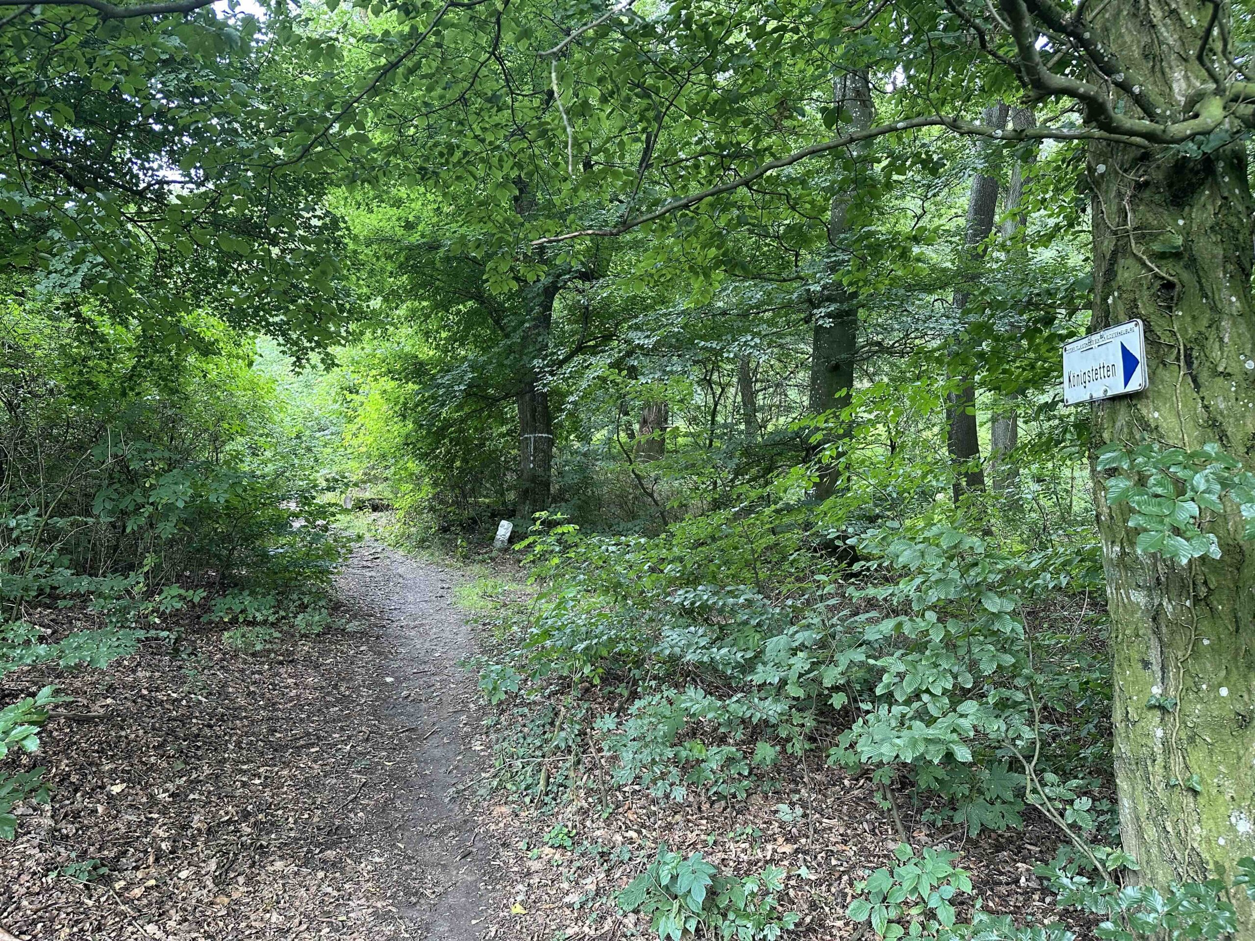 Der Weg startet in Königstetten bei der Kirche gemeinsam mit der grünen Markierung nach Hainbuch. Man folgt zunächst auf der rechten Seite der Kogelgasse, einer alten Kellergasse. Am Ende, beim ehemaligen Lesehof des Stifts Göttweig, führt rechts eine Forststraße durch einen Hohlweg weiter, der man immer geradeaus bergauf folgt. Man kommt vorbei am Jupiter Planetenwanderweg) und quert eine Forststraße nach der ein Wegweiser nach rechts auf eine Wiese führt. Gleich links geht es weiter durch einen schmalen von Bäumen umgebenen Pfad, bis man wieder auf eine Forststraße kommt. Leicht rechts versetzt führt ein Weg in den Wald, wo sich das Alpenvereinsdenkmal auf der Jahnhöhe und die nächste Station (Saturn) des Planetenwegs befindet. Nun geht es stetig durch den Wald den Berg hinauf bis man am Ende auf den Wegknoten Tulbinger Kogel/Leopold-Figl-Warte trifft, wo dieser Weg zusammen mit der roten Markierung aus Hainbuch endet.
