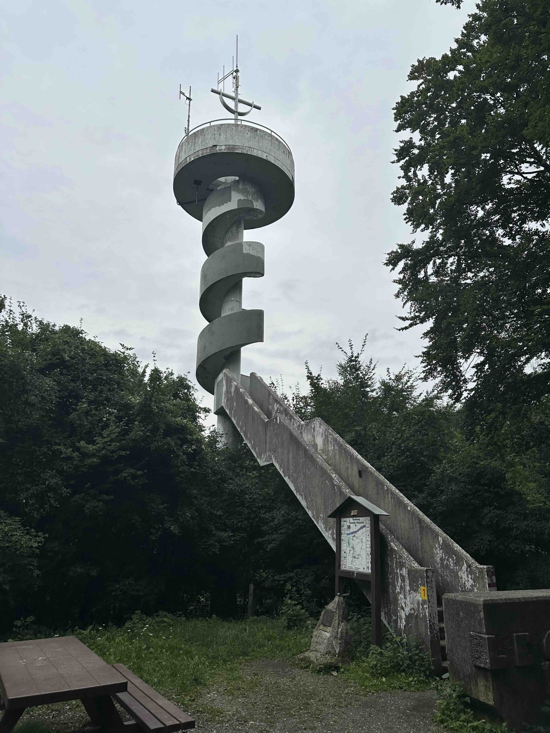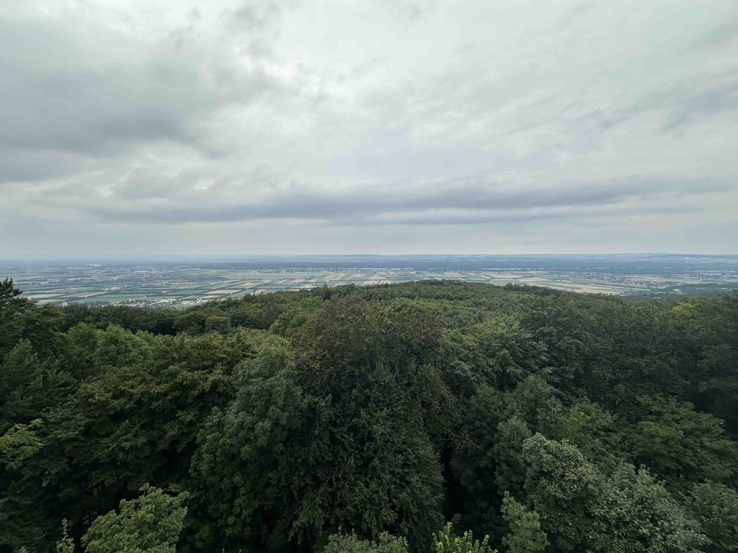 Ein kleines Stück links hinauf befindet sich die namensgebende Leopold-Figl-Warte die einen wunderschönen Blick über das Donaufeld bietet. Noch ein Stück weiter unten, entlang der roten Markierung, befindet sich das Berghotel Tulbingerkogel.