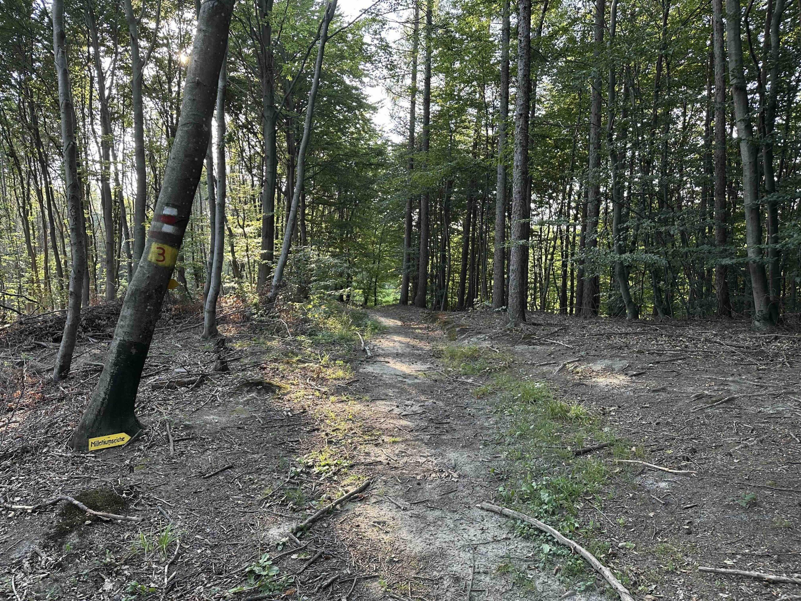 Der Weg startet bei der gemeinsam mit der blauen Markierung zum Passauerhof und der gelben Markierung auf den Tulbiger Kogel. Er trifft am Ende wieder auf die blaue Markierung.