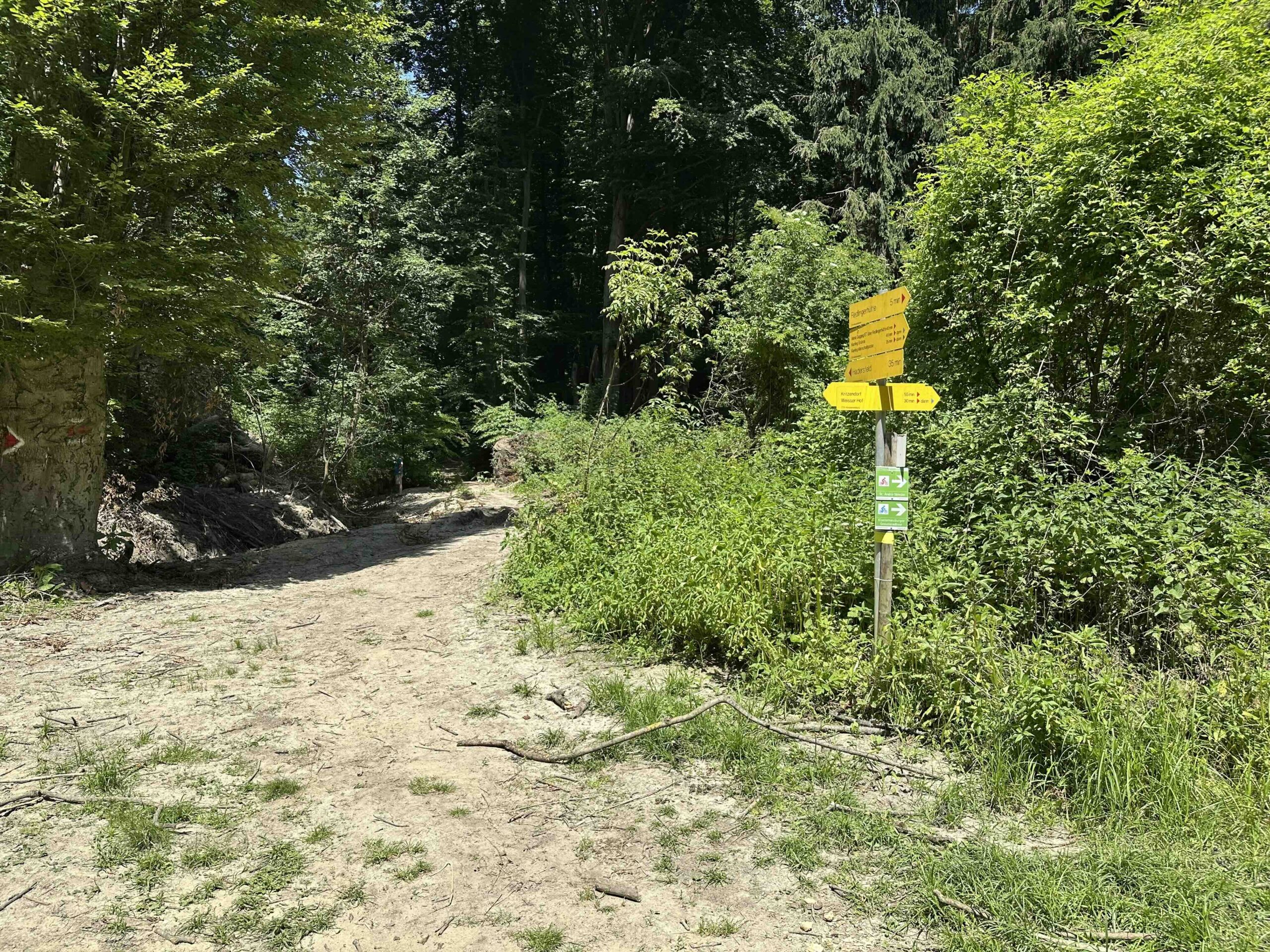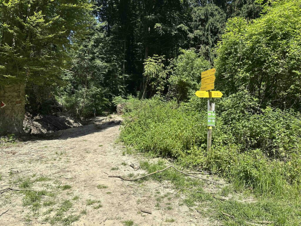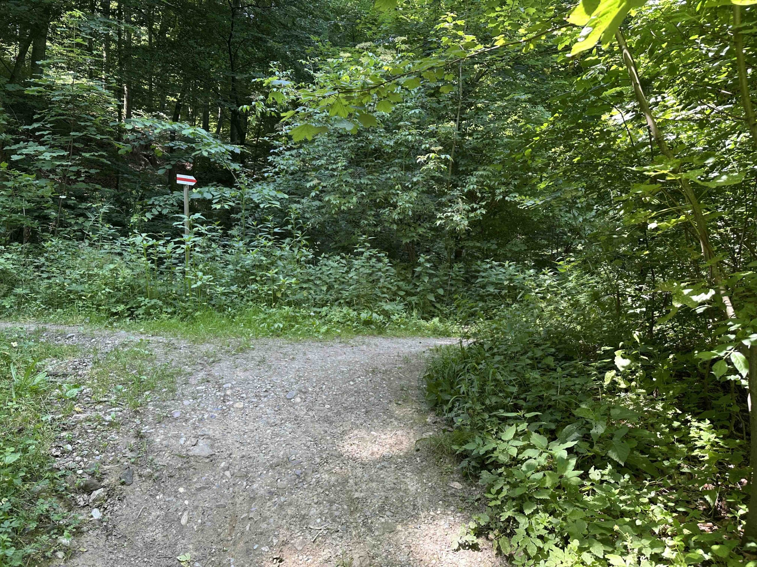 Am Ende es Weges wird man auf einer Forststraße am Ortsrand von Hadersfeld beim Wegknoten Hadersfeld/Am Waldweg ausgespuckt.