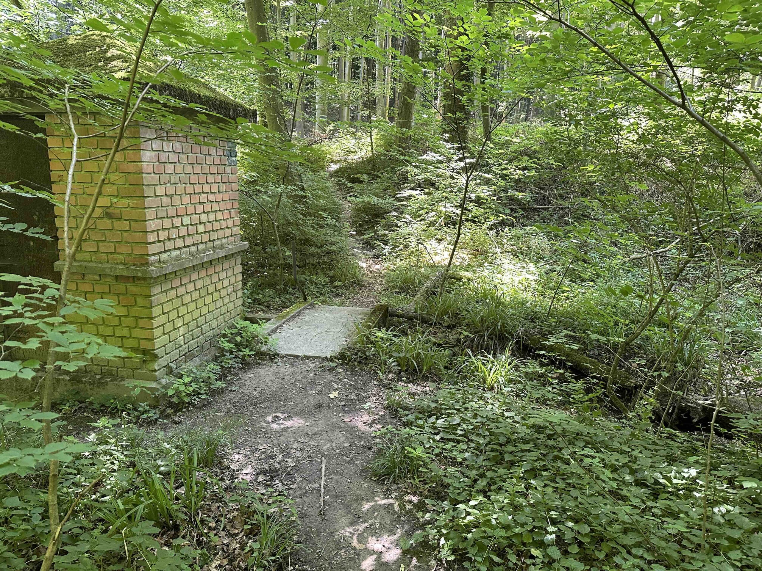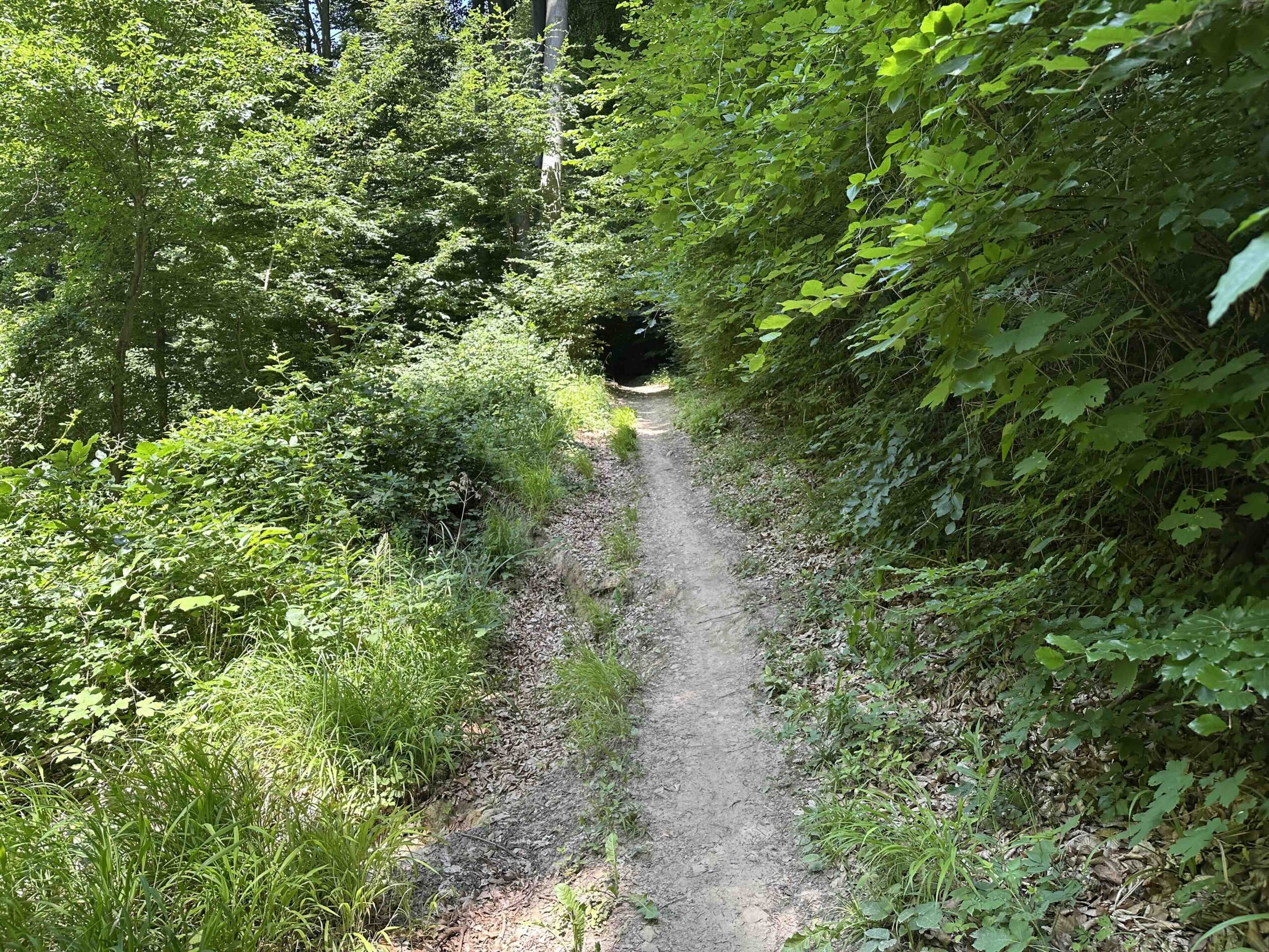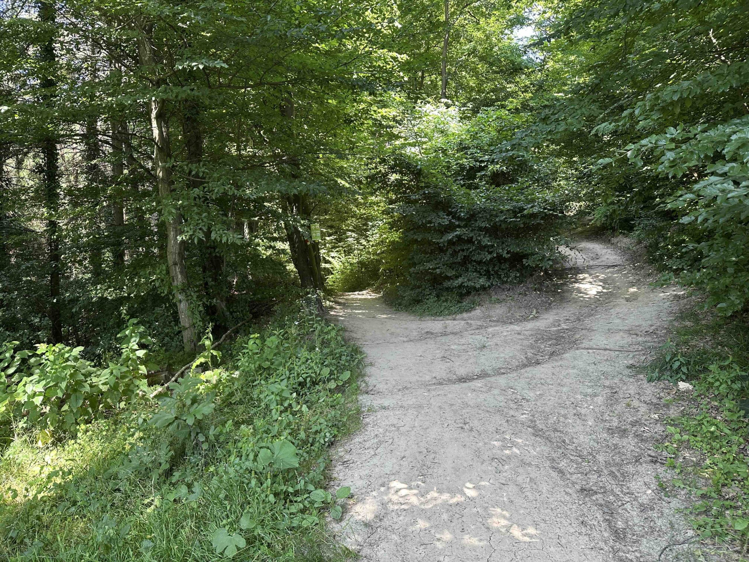 Am Ende es Weges wird man auf einer Forststraße am Ortsrand von Hadersfeld beim Wegknoten Hadersfeld/Am Waldweg ausgespuckt.