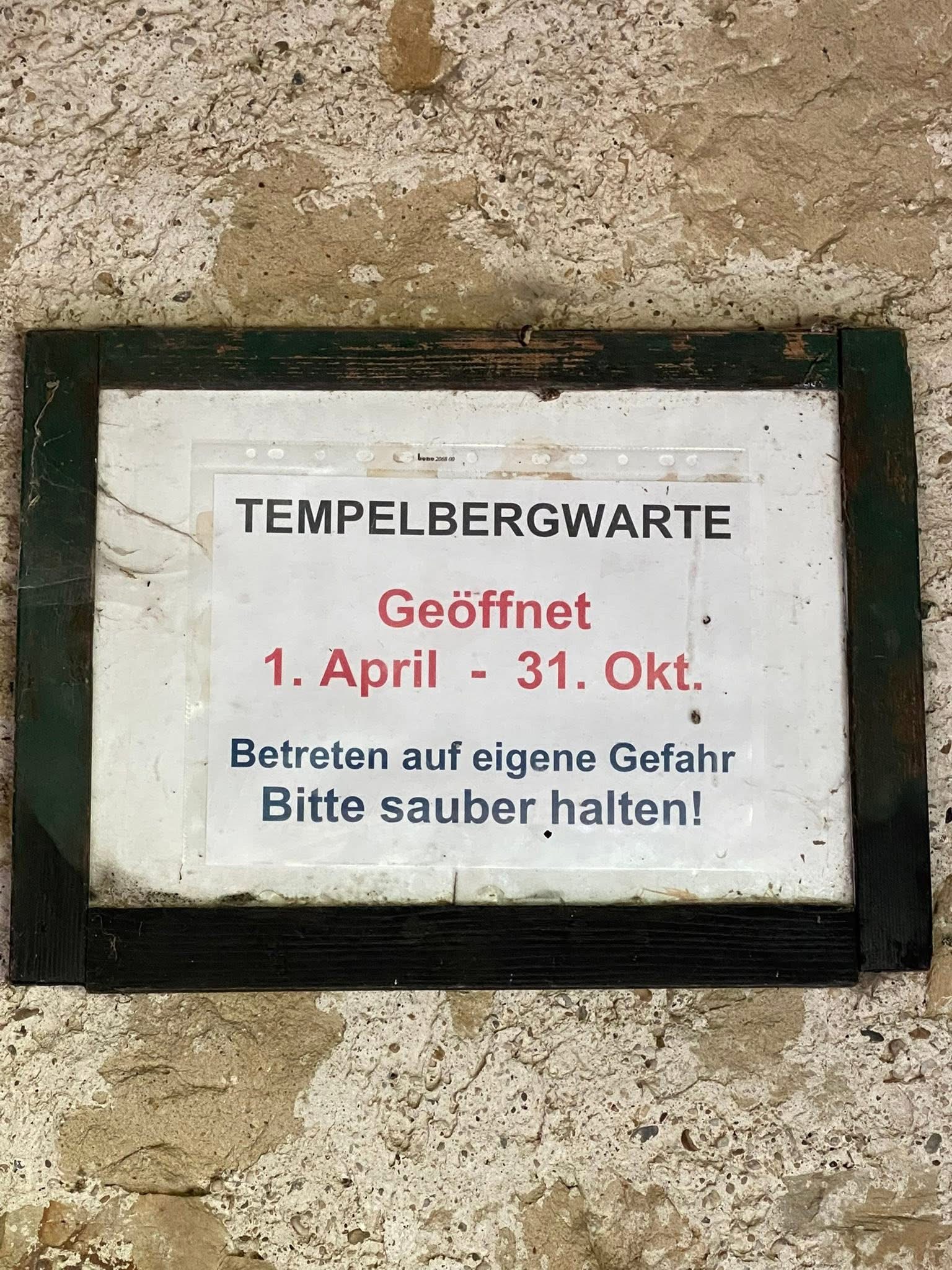 Ab Montag, den 17.11.2025 bis Ende März 2026 wird die Tempelbergwarte wie jedes Jahr über den Winter gesperrt!