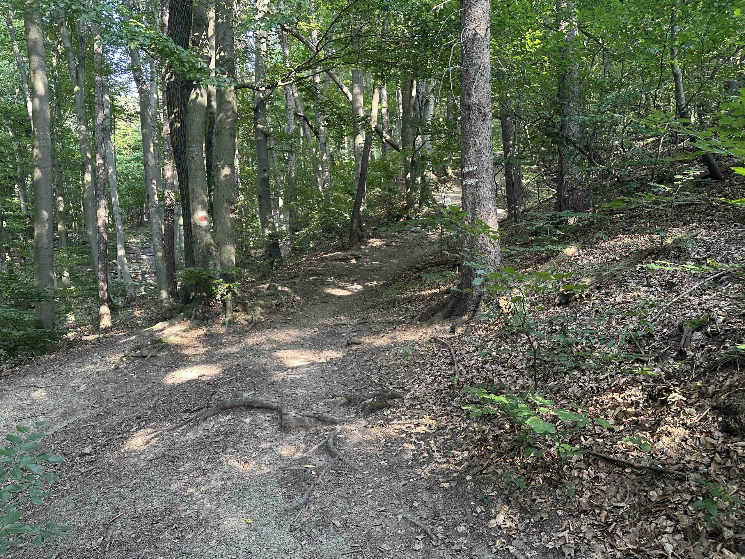 Der Weg startet gegenüber vom Schloß an der Hauptstraße. Zunächst geht es neben der Hauptstraße einen schmalen Pfad entlang der alsbald auf einen kleinen Platz und über eine Brücke zurück auf die Hauptstraße führt. Kurz darauf wechslet man in auf einem Fußweg in die Karl Wurzingerstraße. Dieser folgt man bis sie in die Koglgasse übergeht der man weiter folgt. Am Ende der Koglgasse zweigt ein Weg ab der zum Tulbinger Steig führt. Dieser geht nun hohlwegartig steil den Berg hinauf. AM Ende des Hohlwegs (rechts halten) erreicht man eine breite Forststraße die man quert. Dahinter geht es weiter steil hinauf und über Wurzeln bis zu einer weiteren Forststraße bei der man rechts über die kleine Wiese geht. Kruz darauf erreicht man das beliebte Berghotel Tulbingerkogl und den gleichnamigen Wegknoten.